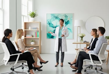 Formaciones sobre ergonomía, pausas activas, gestión del estrés y hábitos saludables en el trabajo.